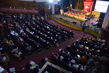 गीता पारायणी – गीता प्रवीण व लर्नगीता की प्रोग्राम कोऑर्डिनेटर हमारी ज्योति दीदी, रूपल दीदी, कविता दीदी, गीता विचक्षण कक्षाओं की मुख्य टीम सदस्या ख्याति दीदी, लर्नगीता की मुख्य समिति सदस्या पूजा भाभी, एवं प्रशिक्षक विभाग के प्रमुख सदस्यों में से एक मनीषा दीदी समेत 1000 साधक सेवी संगीत वाद्यों के साथ गीता पाठ में झूम उठे। पूरे समय LED स्क्रीन पर गीता श्लोकों की स्लाइड भी चलती रहीं। सम्पूर्ण गीता पारायण का एक आदर्श स्वरूप हमें देखने को मिला।